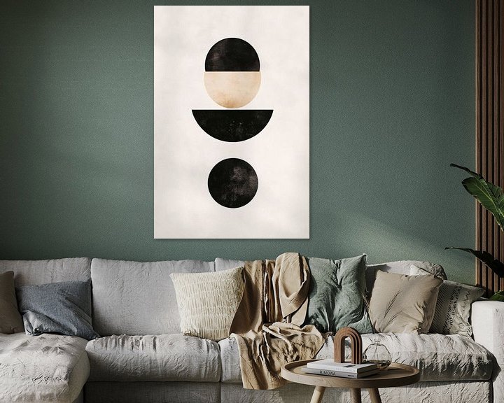 In einem harmonischen Spiel aus Formen und Farben entfaltet sich eine reduzierte Komposition: Sanfte Kurven treffen auf klare Linien, während kontrastierende Schwarz- und Cremetöne faszinierende Tiefen und Dimensionen schaffen. Diese geometrische Anordnung erweckt den Eindruck, als ob sie flüstert, eine zeitlose Geschichte von Balance und Ästhetik zu erzählen.