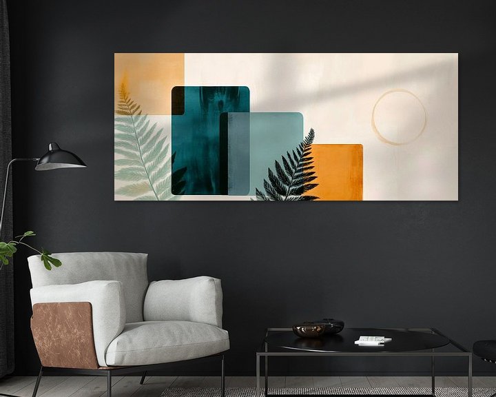Gerahmte Poster mit Abstrakte Komposition mit Farnen und Farben Kunstdruck
