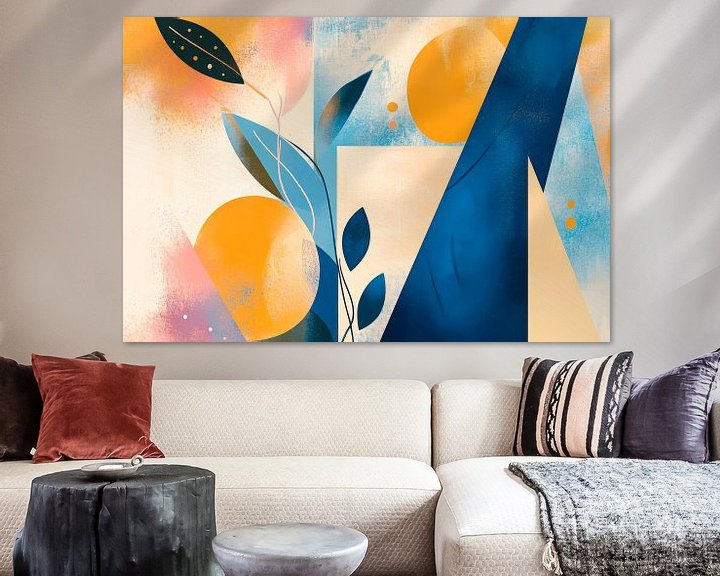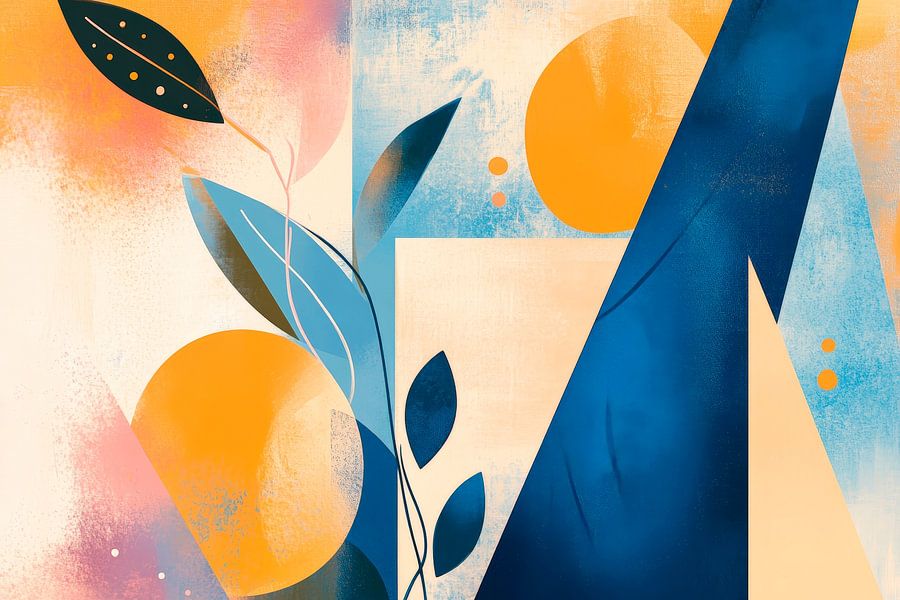 Erhältlich mit oder ohne Passepartout für eine stilvolle Präsentation von Abstrakte Komposition mit Pflanzen und Formen Kunstwerken.