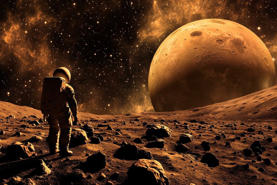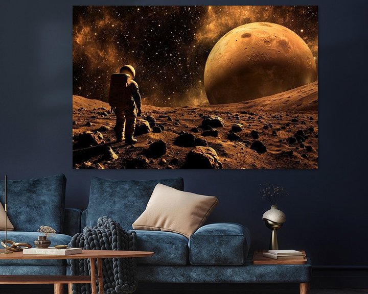 Erhältlich mit oder ohne Passepartout für eine stilvolle Präsentation von Astronaut erkundet fremden Planeten Kunstwerken.