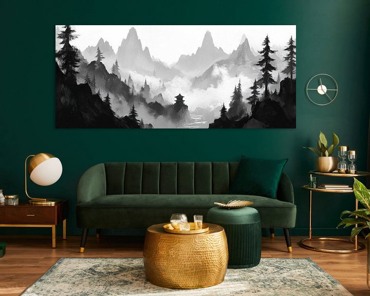 In sanften Grautönen entfaltet sich eine mystische Berglandschaft, die mit verzaubernden Silhouetten von Tannen und majestätischen Gipfeln überzeugt. Nebelschwaden umspielen die Formen und verleihen dem Raum eine Atmosphäre der Ruhe und Besinnlichkeit. Ideal für das Schlafzimmer, schafft es eine friedliche Umgebung, die zum Träumen einlädt.
