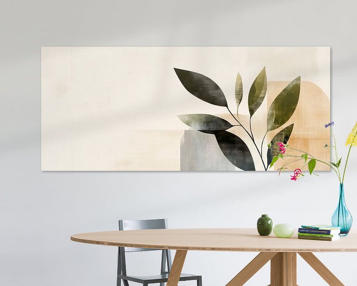 Ein harmonisches Zusammenspiel von sanften Erdtönen und eleganten Blattformen verleiht diesem Kunstwerk eine beruhigende Ausstrahlung. Die zarten, geschwungenen Linien und die minimalistischen Formen schaffen eine einladende Atmosphäre. Ideal für ein Wohnzimmer oder eine Küche, wo sie Ruhe und natürliche Eleganz ausstrahlen kann.