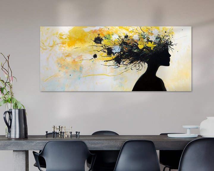 Erhältlich mit oder ohne Passepartout für eine stilvolle Präsentation von Blütenkrone – Silhouette in Gelb und Schwarz Kunstwerken.