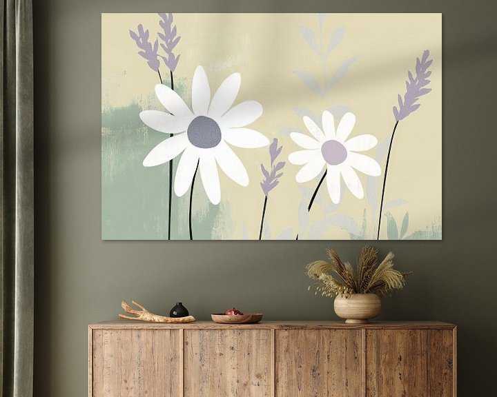 Erhältlich mit oder ohne Passepartout für eine stilvolle Präsentation von Blumenfeld in sanften Farben – Minimalistisch Kunstwerken.