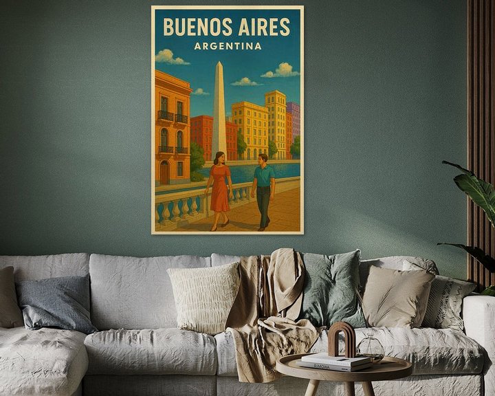 In lebhaften Farben erweckt diese nostalgische Szenerie das pulsierende Leben von Buenos Aires zum Leben. Die stilvollen Gebäude und die Atmosphäre der Romantik laden zum Träumen ein. Perfekt für ein Wohnzimmer, fängt es die Essenz der urbanen Eleganz ein und bringt einen Hauch von Fernweh in jeden Raum.