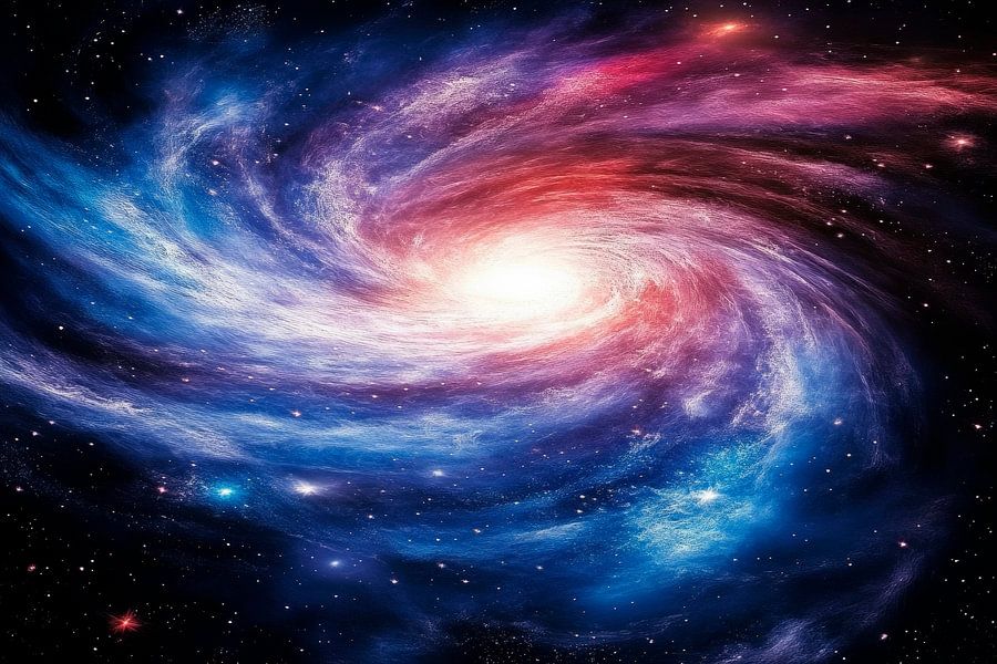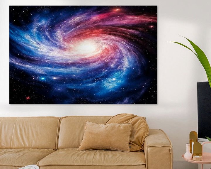 Ein visuelles Meisterwerk aus leuchtenden Blau- und Rottönen entfaltet die faszinierende Weite des Universums. Die spiralförmigen Strukturen ziehen den Betrachter in einen hypnotisierenden Strudel der Kreativität und Inspiration. Ideal aufgehängt im Büro, verwandelt dieses Bild jeden Arbeitstag in ein intergalaktisches Erlebnis voller Ideen und Möglichkeiten.