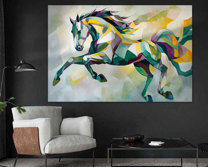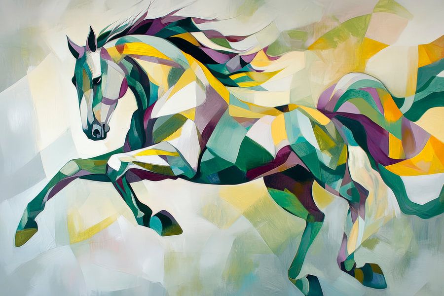 Erhältlich mit oder ohne Passepartout für eine stilvolle Präsentation von Buntes Pferd in abstrahierter Bewegung Kunstwerken.