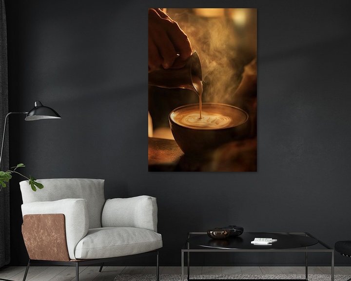 Erhältlich mit oder ohne Passepartout für eine stilvolle Präsentation von Dampfender Kaffee mit Musterdesign Kunstwerken.