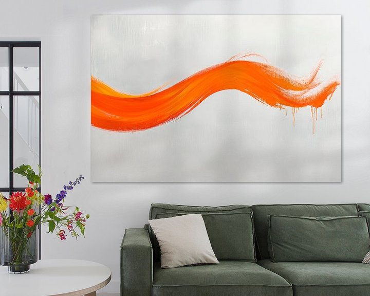 Erhältlich mit oder ohne Passepartout für eine stilvolle Präsentation von Dynamische Orangewelle auf hellem Hintergrund Kunstwerken.