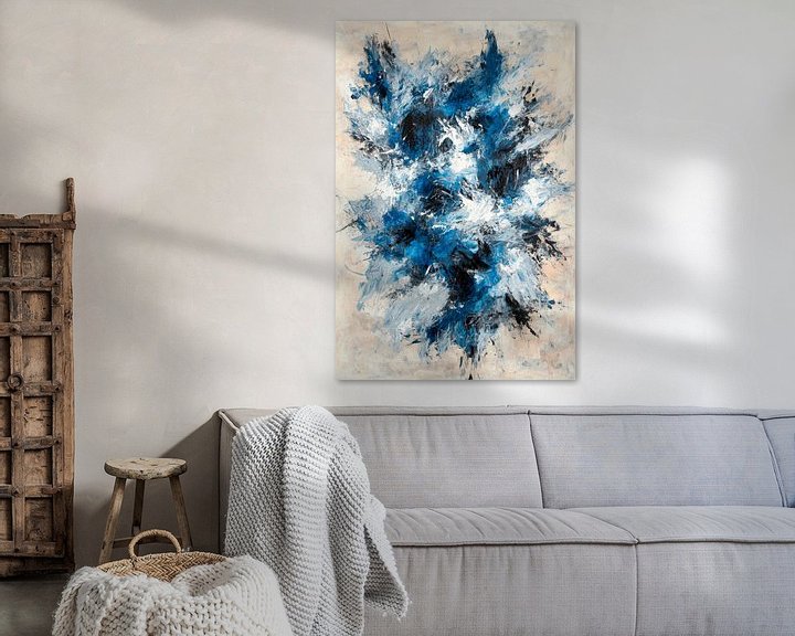 Erhältlich mit oder ohne Passepartout für eine stilvolle Präsentation von Dynamisches abstraktes Kunstwerk in Blau Kunstwerken.