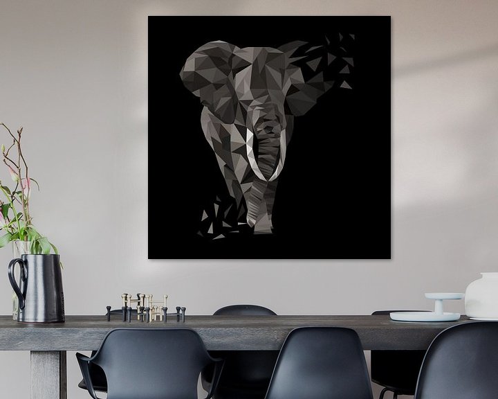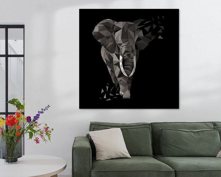Erhältlich mit oder ohne Passepartout für eine stilvolle Präsentation von Elefant Dreiecke Low Poly Style Kunstwerken.