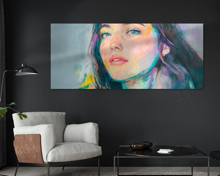 Mit lebendigen Farben und einer strahlenden Ausstrahlung zieht dieses Porträt alle Blicke auf sich. Die faszinierenden Augen und der sanfte Ausdruck verleihen dem Raum eine inspirierende Note. Ideal für ein Wohnzimmer, um Gespräche anzuregen und eine Atmosphäre der Kreativität und Offenheit zu schaffen.