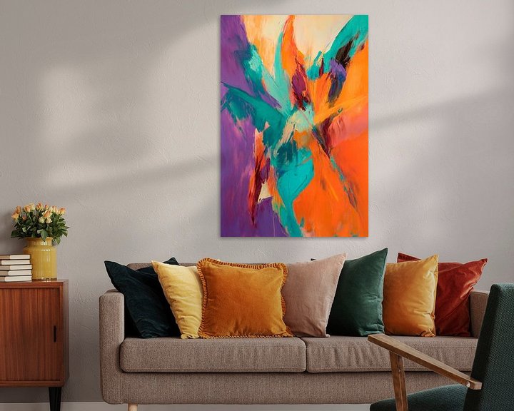 Gerahmte Poster mit Farbenfrohe abstrakte Malerei – Energiegeladen Kunstdruck