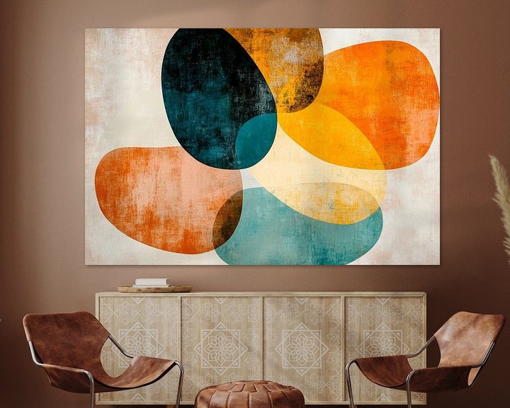 Erhältlich mit oder ohne Passepartout für eine stilvolle Präsentation von Farbenfrohe Formen in harmonischem Zusammenspiel Kunstwerken.