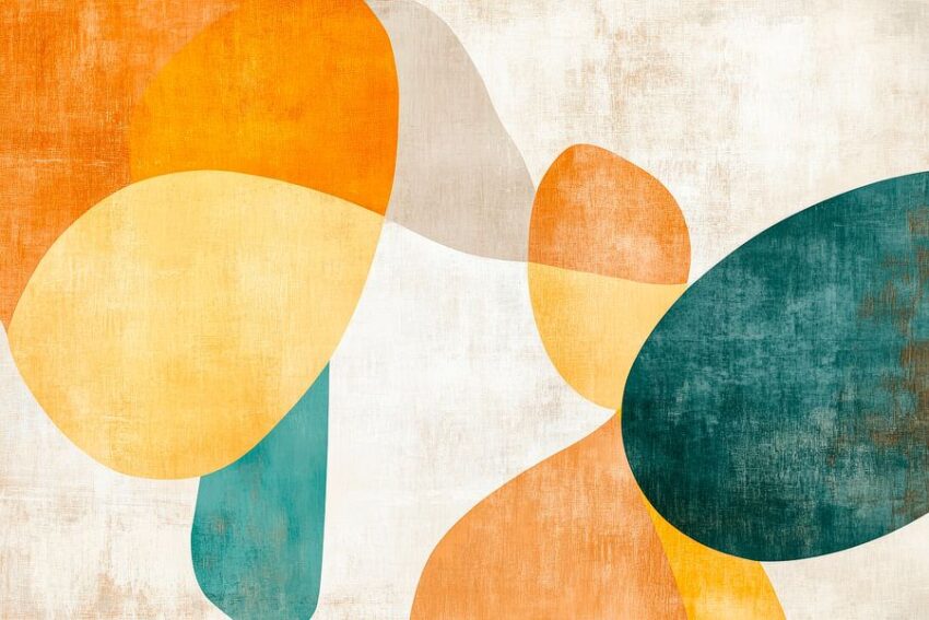 Sanfte, organische Formen in warmen Erdtönen und kühlen Grüntönen laden zum Träumen ein. Diese harmonische Komposition wirkt beruhigend und kreativ zugleich und ergänzt perfekt die Atmosphäre eines Wohnzimmers oder Büros. Die Kombination aus minimalistischer Ästhetik und lebendigen Farben hebt den Raum hervor und inspiriert zum Verweilen.