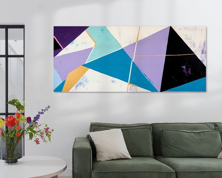 Geometrische Formen in sanften Blau- und Lilatönen tanzen harmonisch auf der Leinwand und verleihen jedem Raum eine moderne Note. Die zarten goldenen Akzente ziehen das Auge an und schaffen ein Gefühl von Eleganz und Kreativität. Ideal für ein Wohnzimmer oder heimisches Büro, um Inspiration und Stil zu fördern.