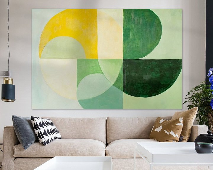 Erhältlich mit oder ohne Passepartout für eine stilvolle Präsentation von Farbenfrohe Harmonie – Geometrische Stille Kunstwerken.