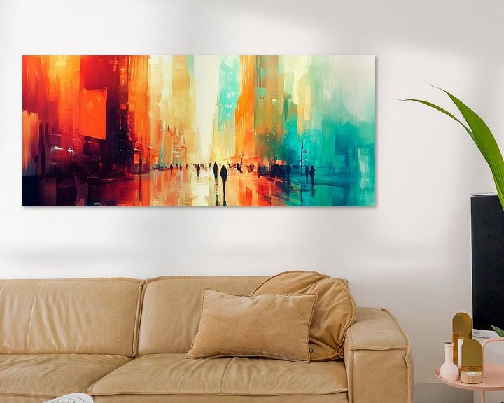 Erhältlich mit oder ohne Passepartout für eine stilvolle Präsentation von Farbenfrohe Stadtszene bei Dämmerung Kunstwerken.