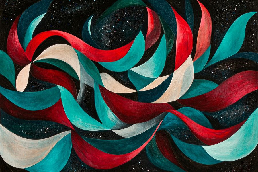 Erhältlich mit oder ohne Passepartout für eine stilvolle Präsentation von Farbenfrohe Wellen auf dunklem Grund Kunstwerken.