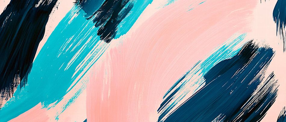 Mit dynamischen Farben in sanften Rosatönen und tiefem Blau entfaltet dieses Kunstwerk eine lebendige Energie. Die spielerischen Pinselstriche schaffen einen harmonischen Fluss und laden zur Kreativität ein. Ideal für ein modernes Wohnzimmer oder ein inspirierendes Büro, wo es den Raum mit einer frischen, künstlerischen Atmosphäre belebt.