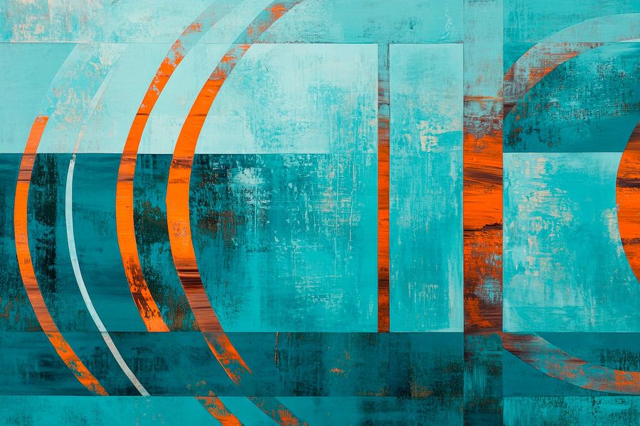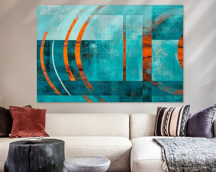 Gerahmte Poster mit Farbenspiele der Stille – Abstrakt Kreis und Linie – Harmo Kunstdruck