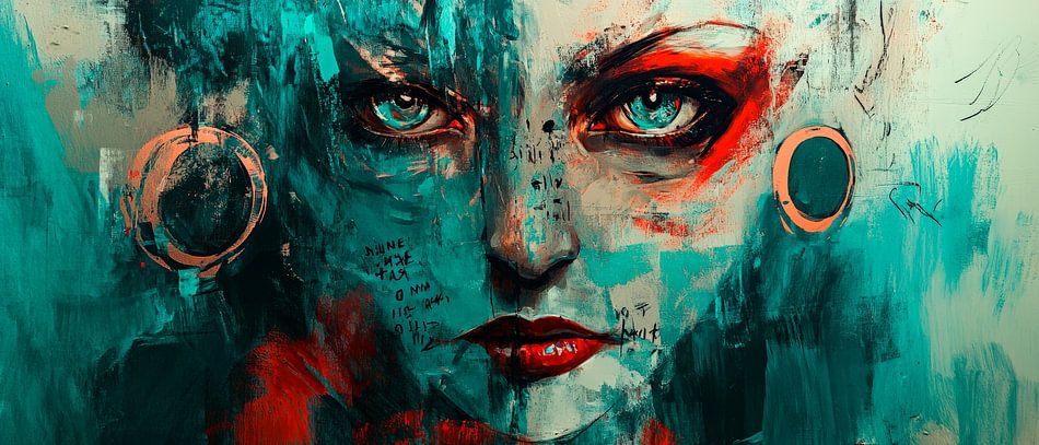 Gerahmte Poster mit Farbexplosion im Gesicht – Ausdrucksvoll und Stark Kunstdruck