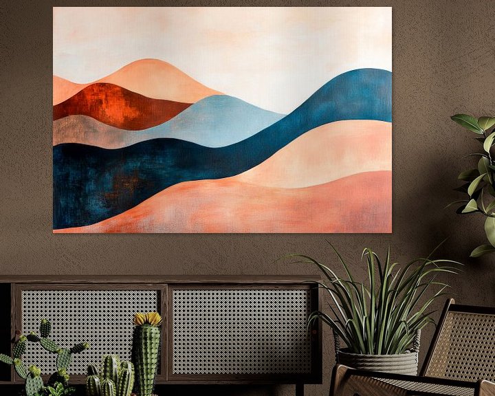 Sanfte Wellen in warmen Erdtönen tanzen über die Leinwand und kreieren eine harmonische Landschaft, die zum Träumen einlädt. Die ruhigen Farbtöne in Blau, Braun und beige verleihen dem Raum eine entspannende Atmosphäre. Dieses Kunstwerk eignet sich hervorragend für das Schlafzimmer, wo es Ruhe und Gelassenheit fördert.