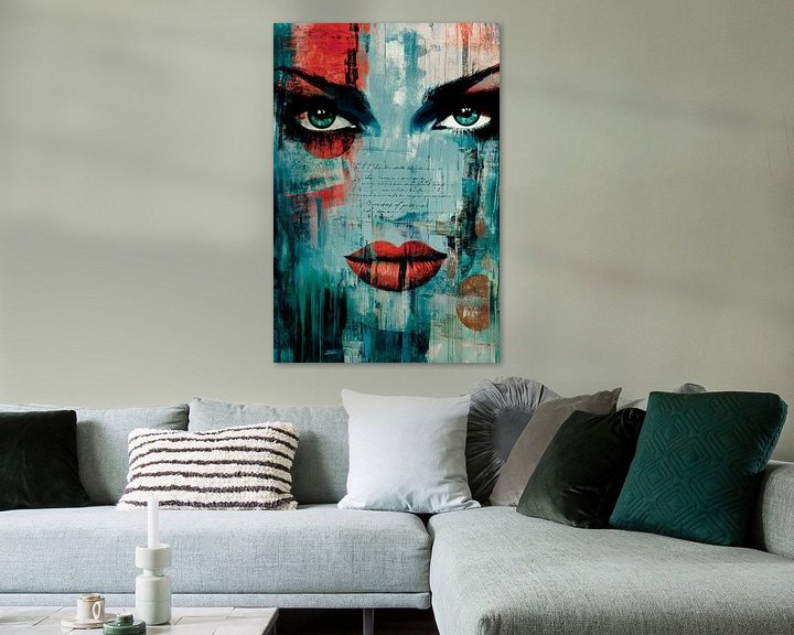 Erhältlich mit oder ohne Passepartout für eine stilvolle Präsentation von Farbintensive Augen und Lippen – Porträtkunst Kunstwerken.