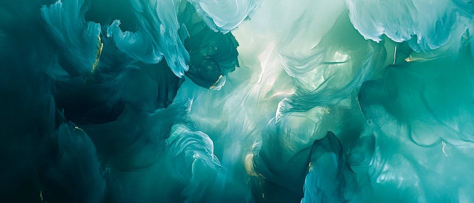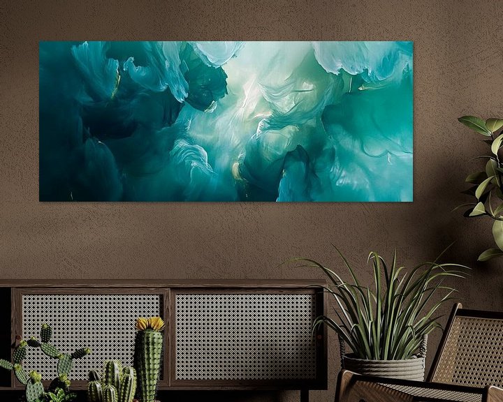 Sanfte, fließende Farben in beruhigendem Blau und sanftem Grün entführen den Betrachter in eine Traumwelt. Die zarten Lichtspiele schaffen eine harmonische Atmosphäre, die zum Relaxen einlädt. Dieses Kunstwerk eignet sich hervorragend für das Schlafzimmer, um dort Ruhe und Entspannung zu fördern.