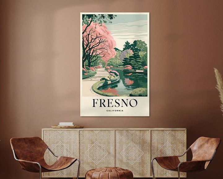 Erhältlich mit oder ohne Passepartout für eine stilvolle Präsentation von Fresno, California Vintage Travel Poster Kunstwerken.