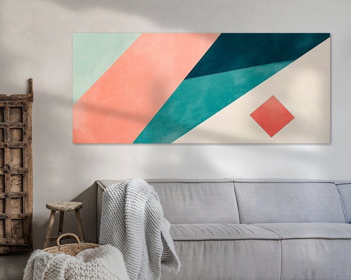 Erhältlich mit oder ohne Passepartout für eine stilvolle Präsentation von Geometrische Farbenspiele in Pastelltonen Kunstwerken.