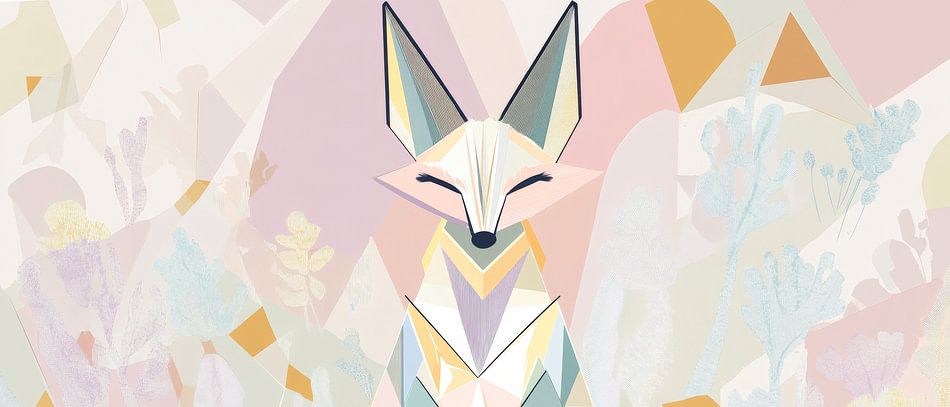 In sanften Pastelltönen strahlt dieser geometrische Fuchs eine verspielte Eleganz aus. Seine großen, aufmerksamen Augen und die abstrahierten Formen verleihen dem Raum ein modernes Flair. Ideal für das Wohnzimmer, bringt dieses Kunstwerk Stil und Charme, während es gleichzeitig eine einladende Atmosphäre schafft.