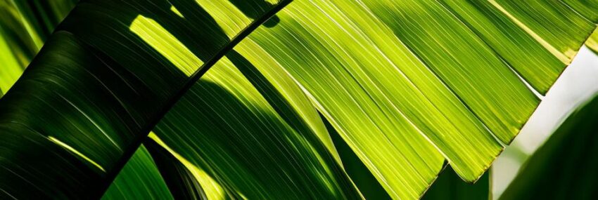 Sanfte Lichtstrahlen tanzen über die üppigen, tiefgrünen Blätter, die sich in harmonischen Kurven entfalten. Die lebendigen Farben und die elegant geschwungenen Formen erzeugen ein Gefühl von tropischer Frische und Vitalität. Schattenspiele verleihen dem Bild zusätzlich eine mysteriöse Tiefe – ein lebendiger Hauch der Natur, der zum Träumen einlädt.