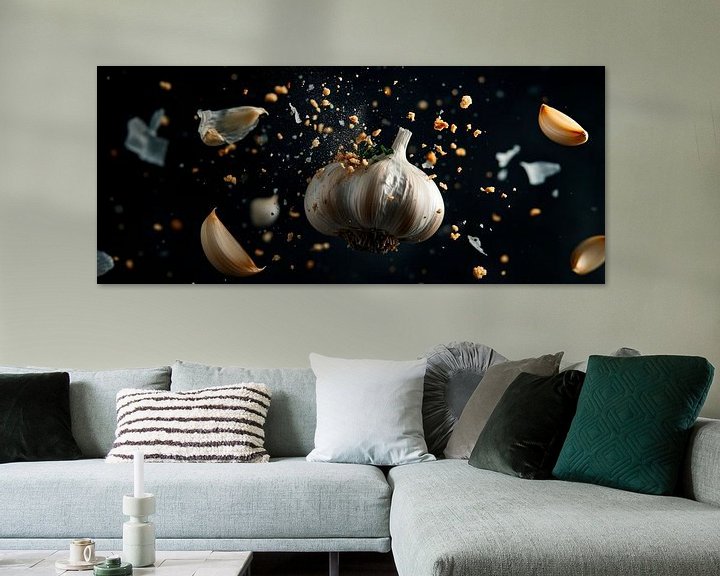 Erhältlich mit oder ohne Passepartout für eine stilvolle Präsentation von Knoblauchexplosion – Kulinarische Kunst Kunstwerken.