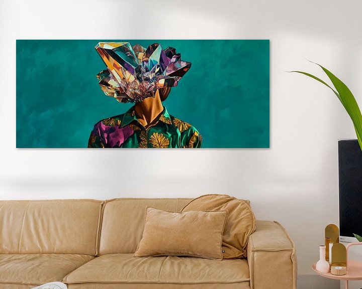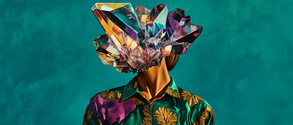 Erhältlich mit oder ohne Passepartout für eine stilvolle Präsentation von Kopf voller Kristalle und Farbenpracht Kunstwerken.