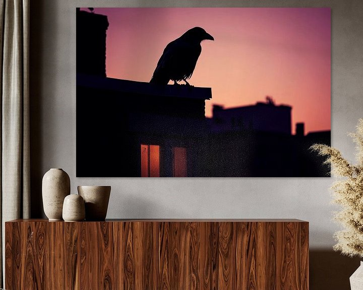 Erhältlich mit oder ohne Passepartout für eine stilvolle Präsentation von Kranichsilhouette vor Dämmerungshimmel Kunstwerken.