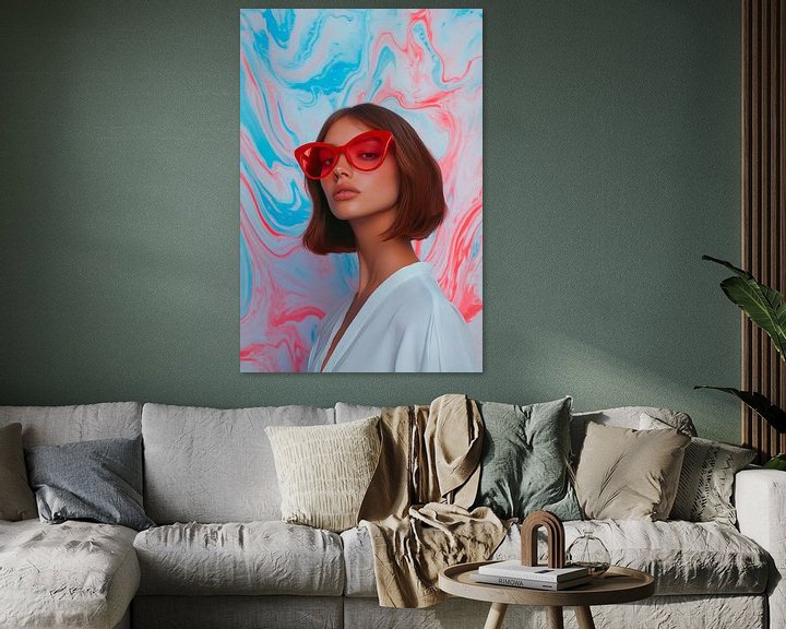 Erhältlich mit oder ohne Passepartout für eine stilvolle Präsentation von Lässiger Look mit roten Vintage-Sonnenbrillen Kunstwerken.