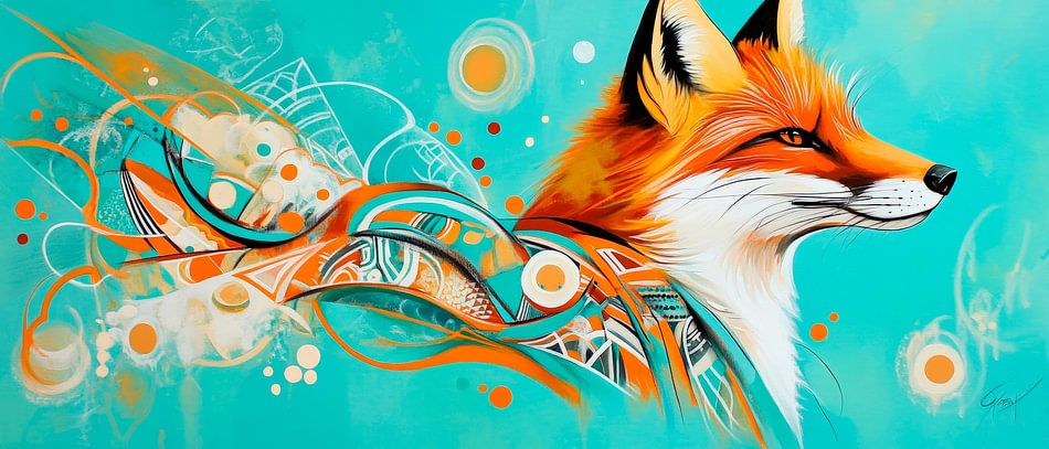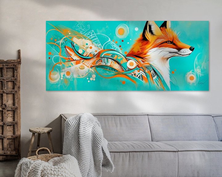 Ein majestätischer Fuchs, umhüllt von dynamischen Linien und leuchtenden Farben, fängt die Sinne ein. Die harmonische Kombination aus Orange und Türkis verleiht dem Bild eine lebendige Energie, die Lebensfreude ausstrahlt. Ideal für das Wohnzimmer, lädt es zum Verweilen und Träumen ein, während es gleichzeitig einen Hauch von Natur und Kreativität verbreitet.
