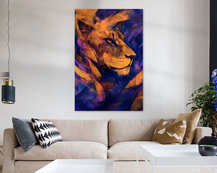 Erhältlich mit oder ohne Passepartout für eine stilvolle Präsentation von Löwenporträt in leuchtenden Farben Kunstwerken.