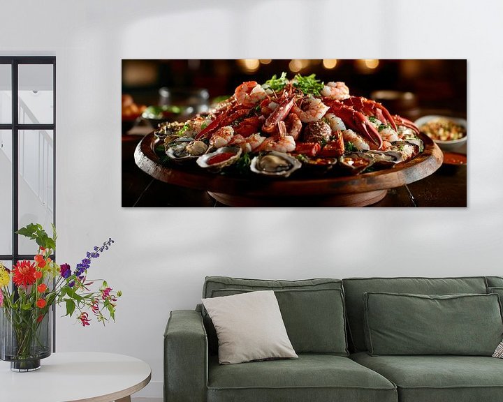 Eine verlockende Häufung von frischen Meeresfrüchten strahlt Genuss aus und weckt die Vorfreude auf ein feierliches Dinner. Die saftigen Garnelen, das zarte Muschelfleisch und der leuchtend rote Krabbenmix bilden ein Fest für die Sinne. Ideal für die Küche oder das Esszimmer, wo Kulinarik und Geselligkeit harmonisch zusammentreffen.