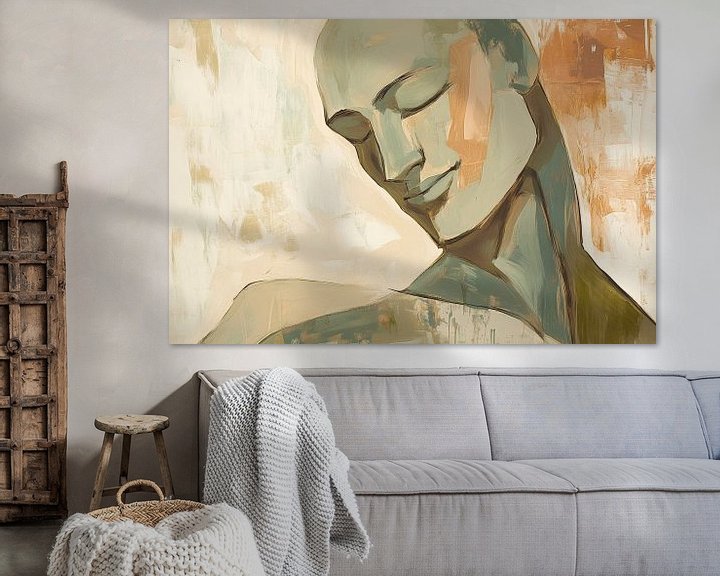 Ein harmonisches Spiel aus sanften Farben und klaren Linien strahlt Ruhe und Gelassenheit aus. Die abstrahierte Darstellung vermittelt ein Gefühl von Intimität und Selbstreflexion. Ideal für das Schlafzimmer, schafft es eine Atmosphäre der Entspannung und fördert besinnliche Momente im Alltag.