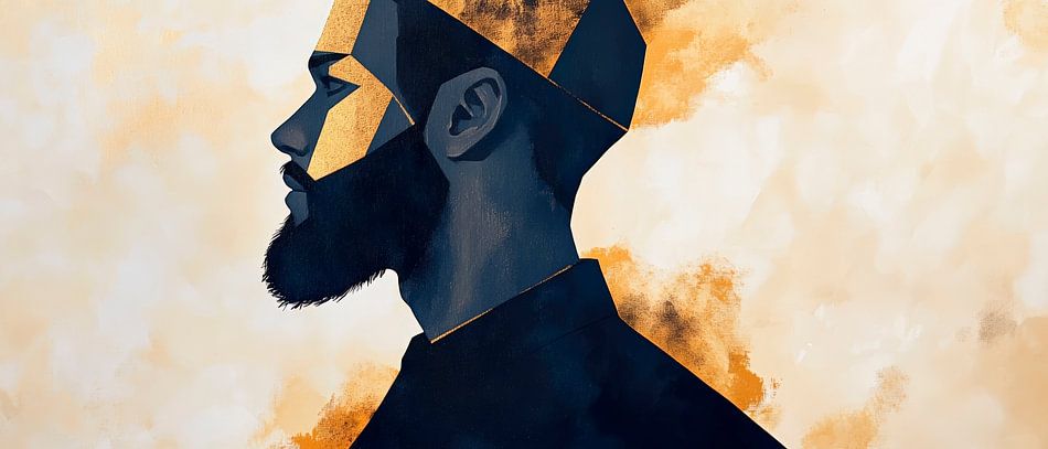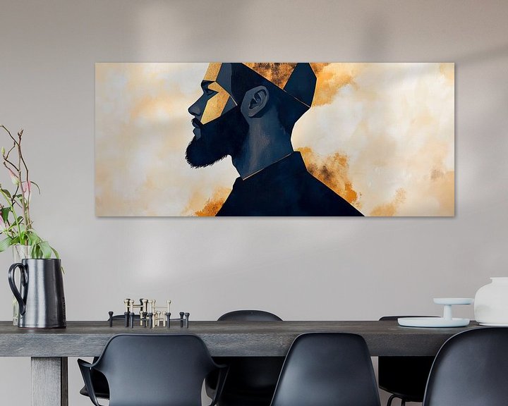 Erhältlich mit oder ohne Passepartout für eine stilvolle Präsentation von Profil eines Mannes in Gold und Blau Kunstwerken.