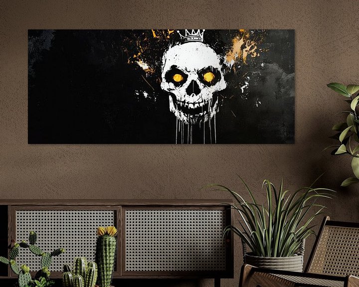 Erhältlich mit oder ohne Passepartout für eine stilvolle Präsentation von Schädel mit Krone und leuchtenden Augen Kunstwerken.
