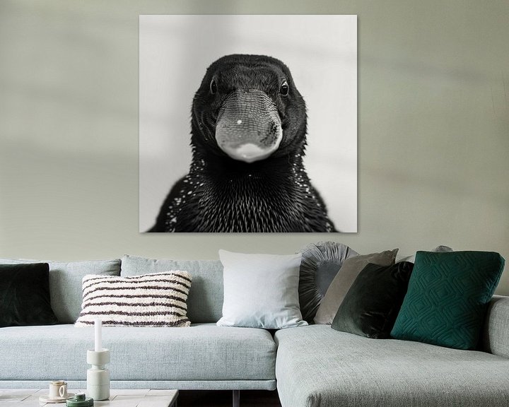 Dieses ausdrucksstarke Schwarz-Weiß-Porträt eines Schnabeltiers fängt die Einzigartigkeit und das mysteriöse Wesen dieses außergewöhnlichen Tieres ein. Die feinen Details seines Schnabels und Fells werden in dieser minimalistischen Fotografie beeindruckend zur Geltung gebracht. Perfekt für alle, die ihre Liebe zur Natur und zu ungewöhnlichen Tieren mit dekorativer Kunst zum Ausdruck bringen möchten.
