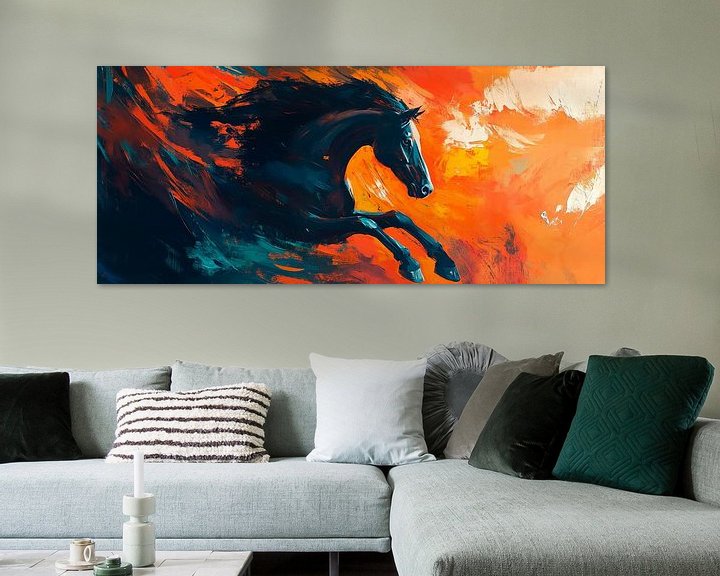 Erhältlich mit oder ohne Passepartout für eine stilvolle Präsentation von Schwarz Pferd im Farbenrausch Kunstwerken.
