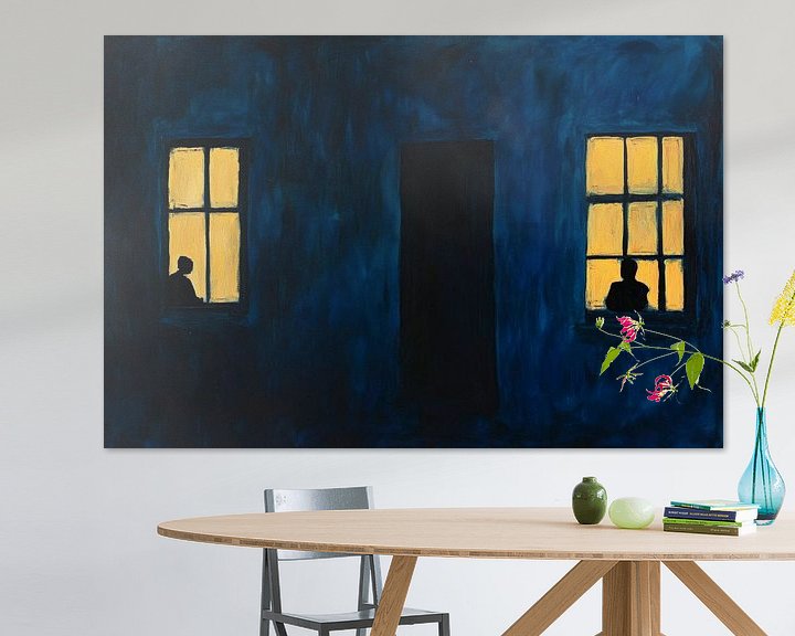Gerahmte Poster mit Silhouetten in Dunkelheit – Fensterblick Kunstdruck