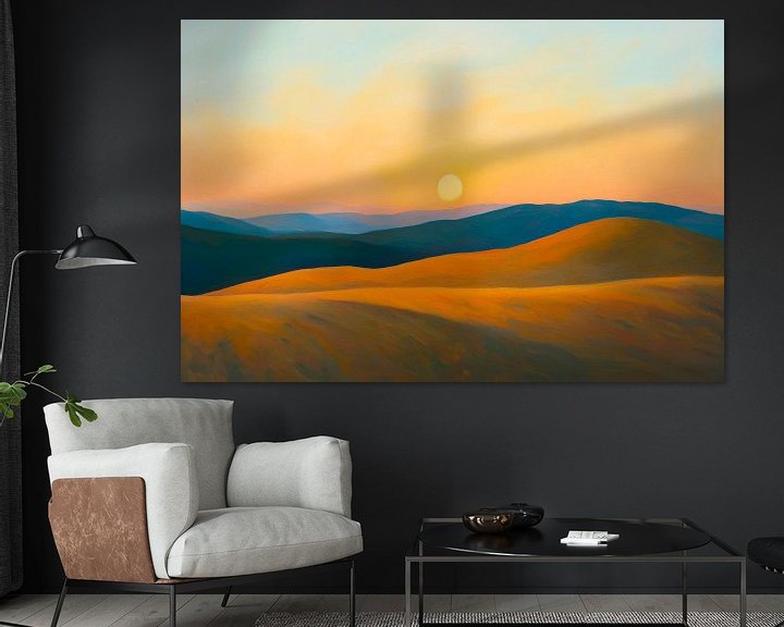 Erhältlich mit oder ohne Passepartout für eine stilvolle Präsentation von Sonnenuntergang Landschaft Kunstwerken.