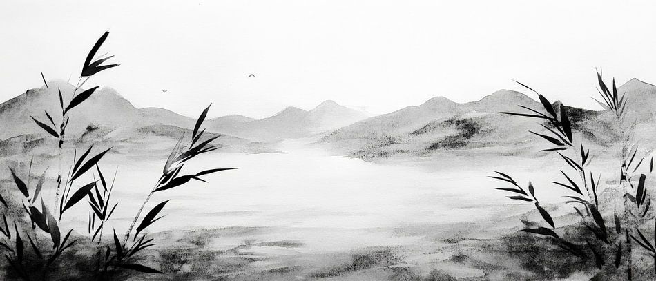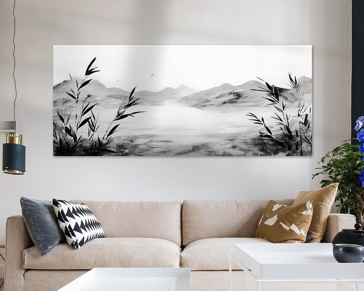 Erhältlich mit oder ohne Passepartout für eine stilvolle Präsentation von Stille Landschaft im Nebel spielend Kunstwerken.