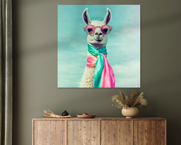 Erhältlich mit oder ohne Passepartout für eine stilvolle Präsentation von Stylisches Lama mit Sonnenbrille Kunstwerken.