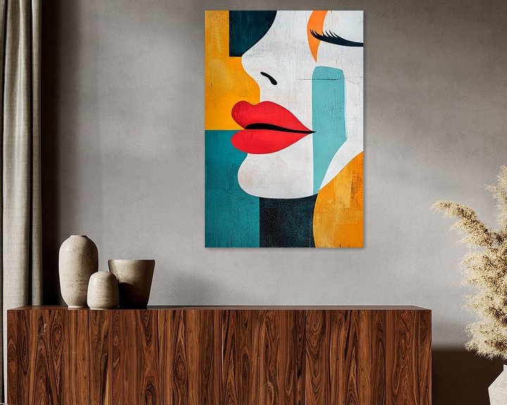 Erhältlich mit oder ohne Passepartout für eine stilvolle Präsentation von Stylisierte Frauenlippe in kräftigen Farben Kunstwerken.